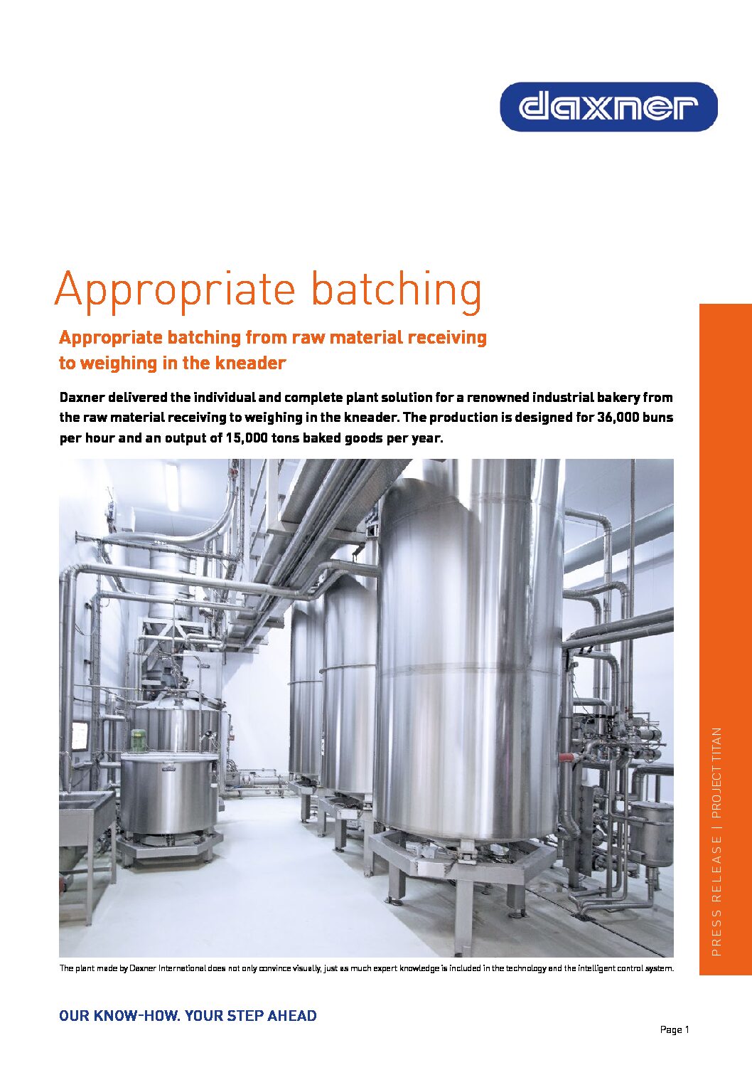 Daxner delivered the individual and complete plant solution for a renowned industrial bakery from the raw material receiving to weighing in the kneader. The production is designed for 36,000 buns per hour and an output of 15,000 tons baked goods per year.